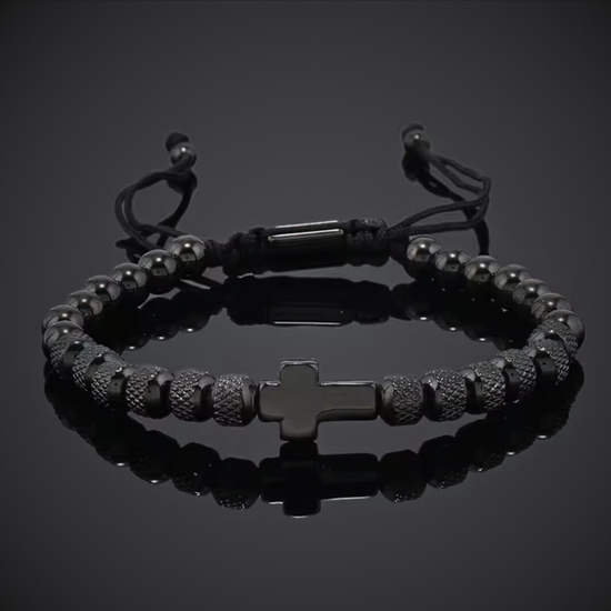 This stylish bracelet made of robust stainless steel combines timeless elegance with deep symbolism. The central black cross embodies faith and strength, while the finely crafted beads and stainless steel elements give the design a modern and luxurious touch.