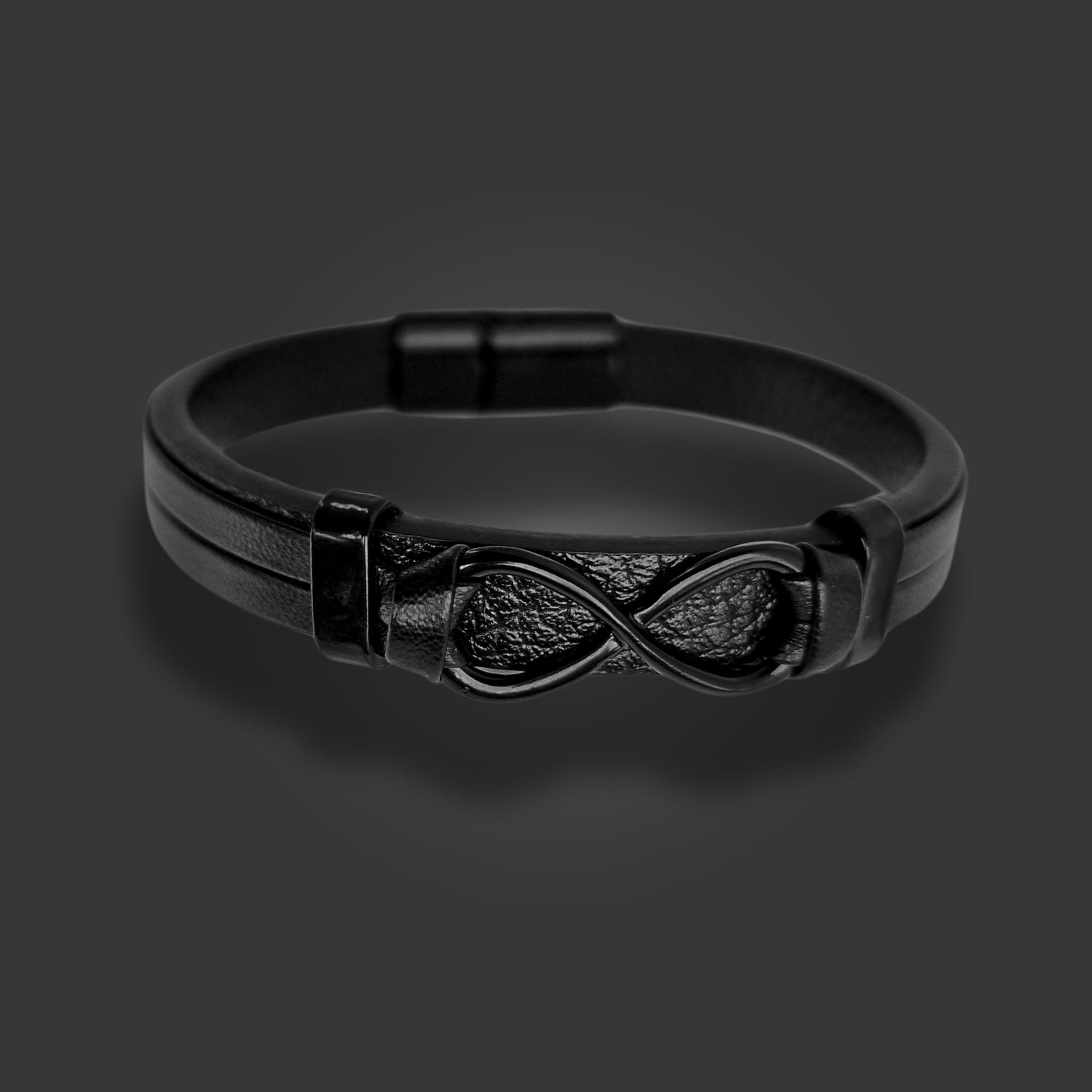 This infinity bracelet combines modern design with timeless symbolism. Made from faux leather, the striking infinity symbol frames the message of eternity and connection. Perfect for any occasion, it is an accessory that enhances your look while conveying a deeper meaning.