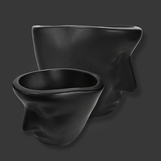 This exceptional vessel combines art and function in a minimalist design that impresses with its striking face shapes. Handcrafted from food-safe Raysin, this unique piece presents itself with a smooth, matte finish that adds a modern, avant-garde touch to any room.