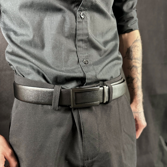 This high-quality genuine leather belt combines elegance and functionality in a stylish accessory. The modern ratchet buckle ensures a perfect fit without any holes. Simply adjust the desired length, fix it and enjoy - practical, comfortable and stylish. Perfect as an everyday accessory or for special occasions. This belt should not be missing from any wardrobe!