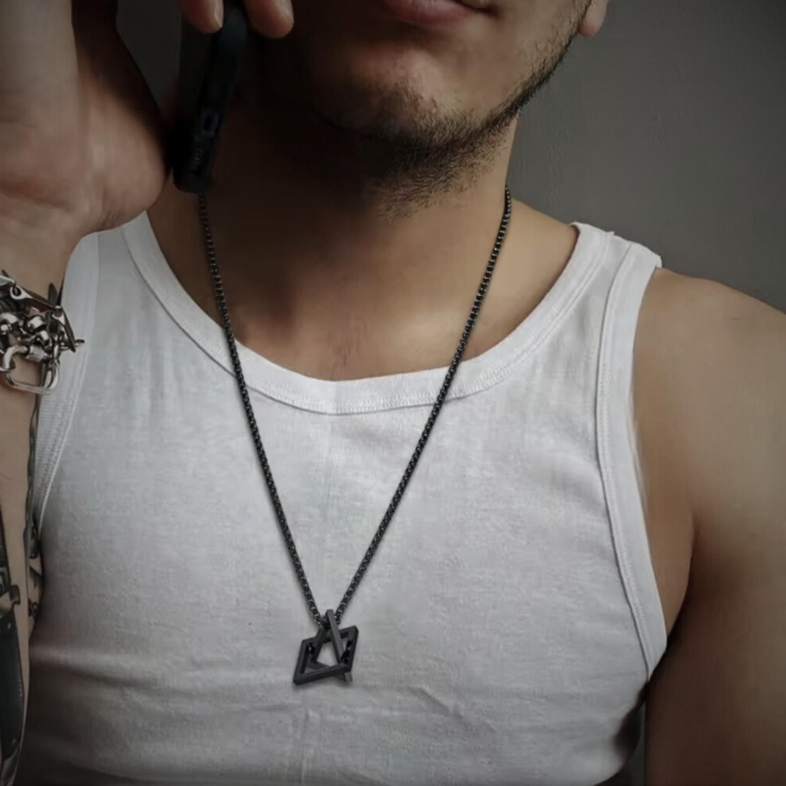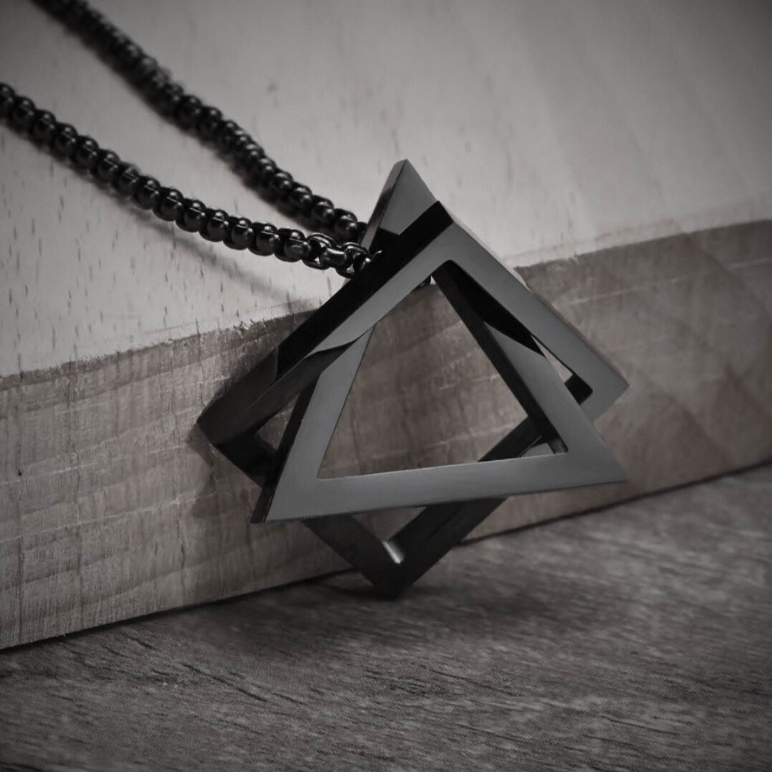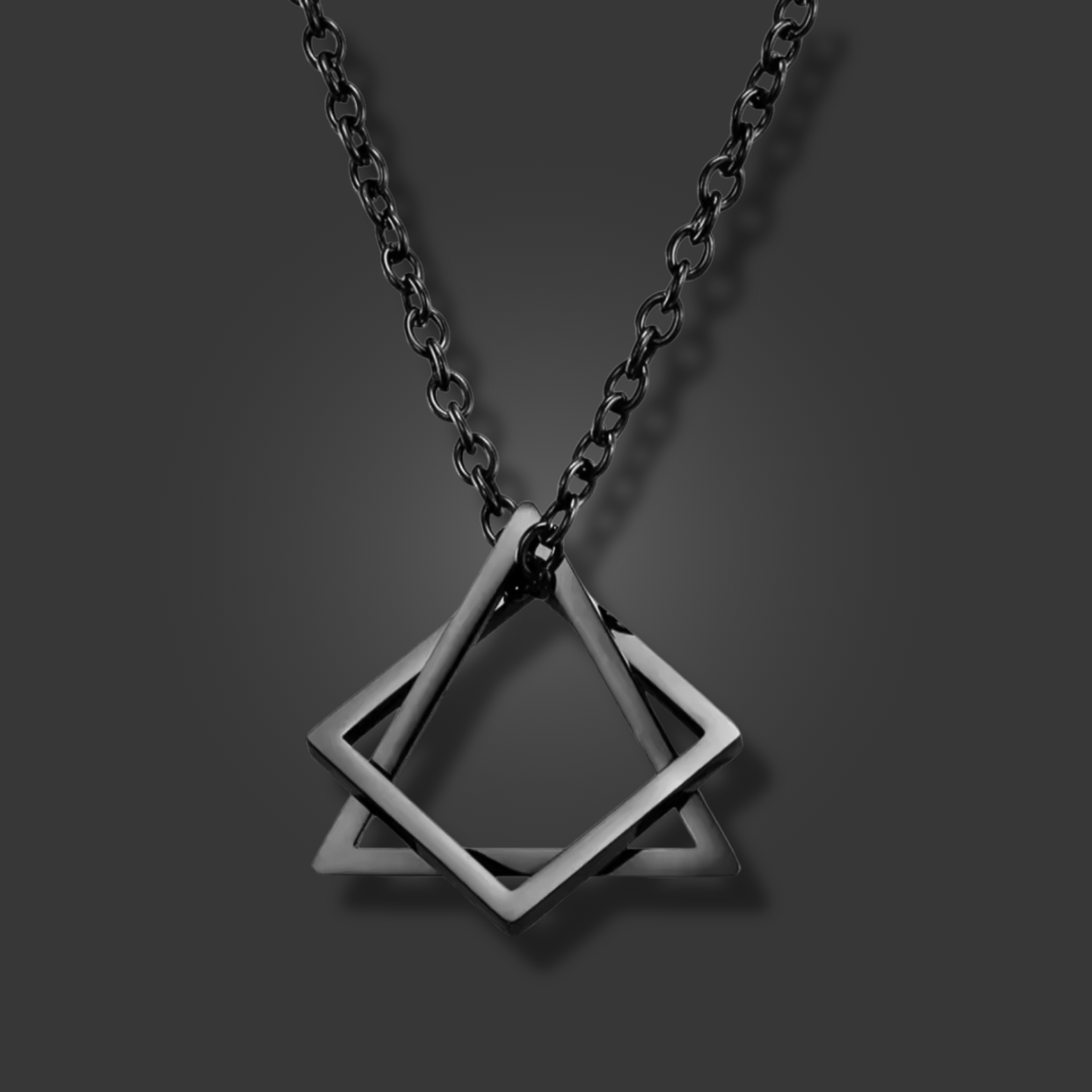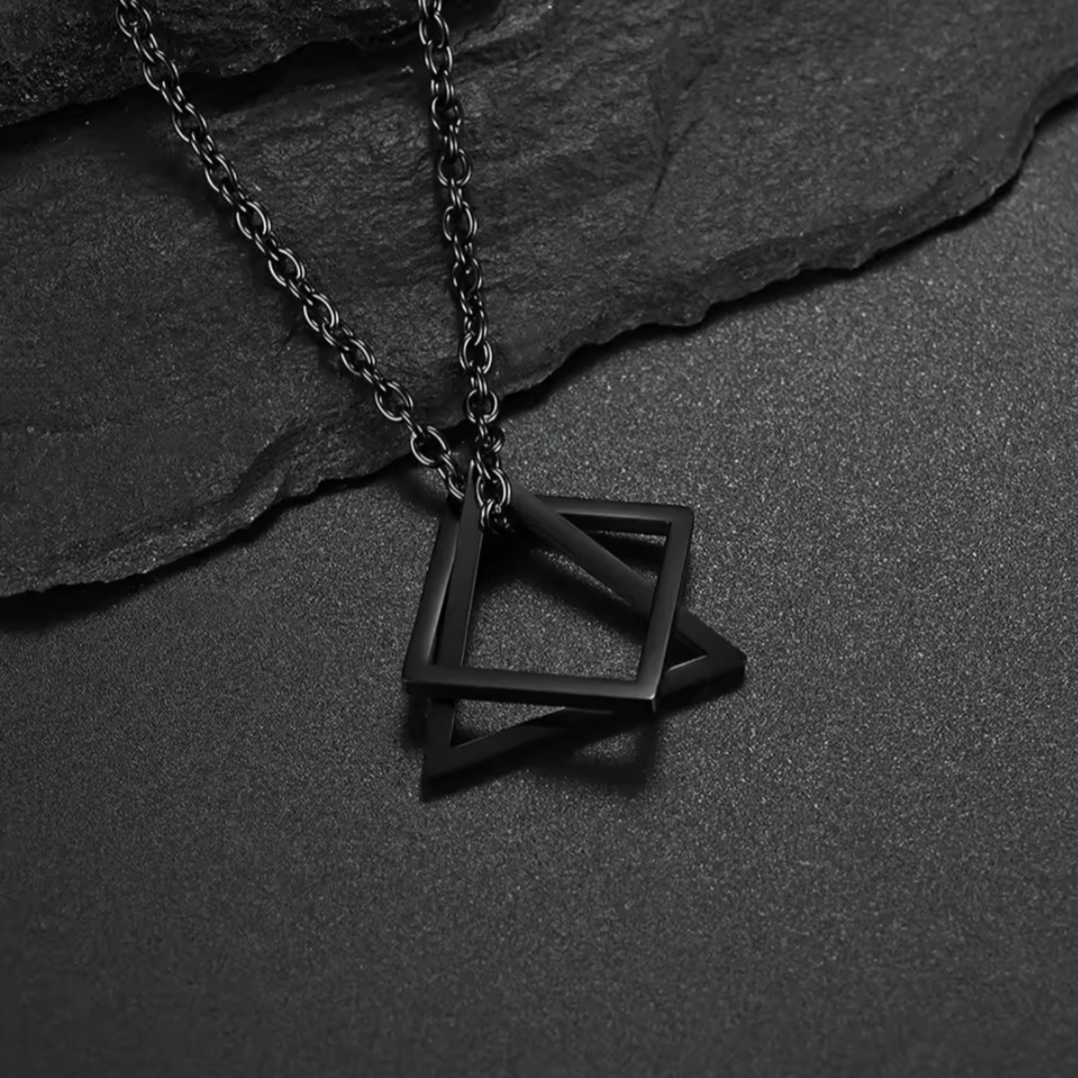 This "Nexus" necklace made of high-quality stainless steel embodies simple elegance and modern sophistication. The intertwined geometric shapes - a triangle and a square - symbolize balance and harmony, while the deep black design makes a powerful statement of strength and style. Perfect for anyone who wants to stand out from the crowd and has a penchant for extraordinary details. Robust and durable, this necklace is the ideal companion for every occasion - whether as a statement piece or a subtle addition to your look.