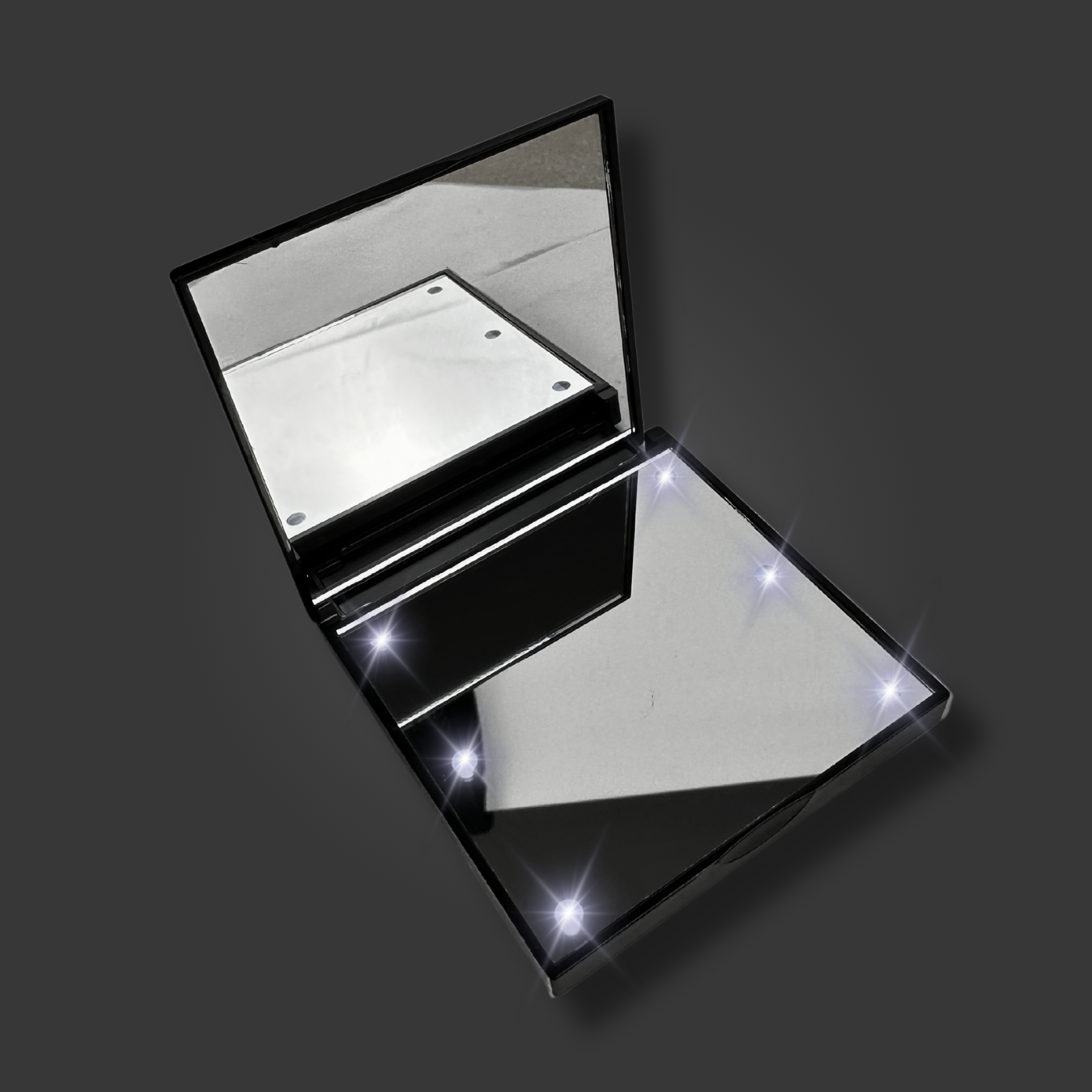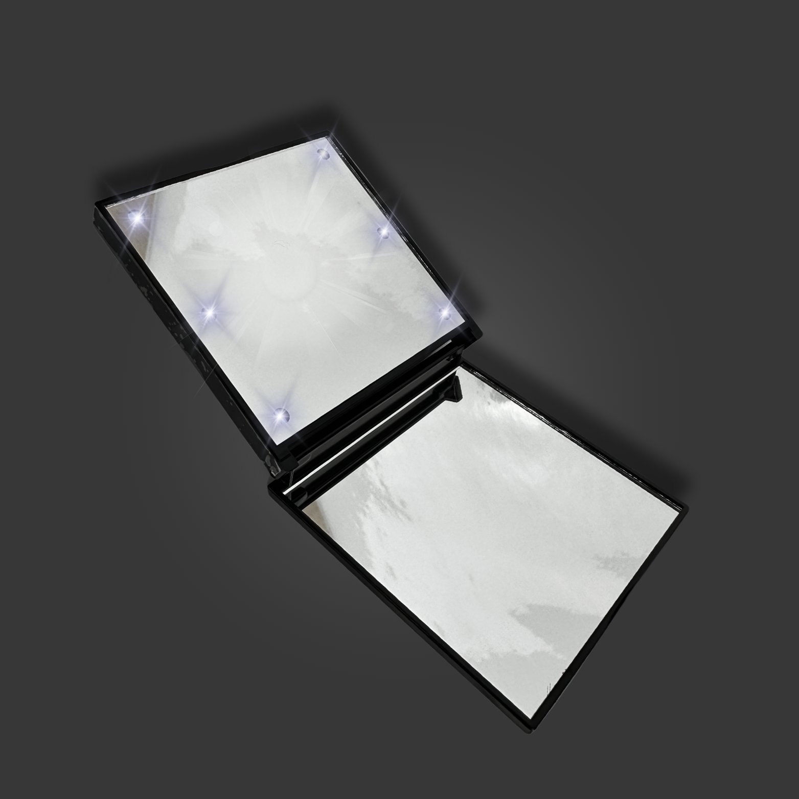 This foldable LED cosmetic mirror is your new companion for on the go! With 1x and 2x magnification, you can check every detail of your makeup - anytime, anywhere. The 6 built-in LEDs provide perfect lighting, regardless of the lighting conditions. Thanks to the compact, foldable design, it fits in any handbag and is super easy to transport.