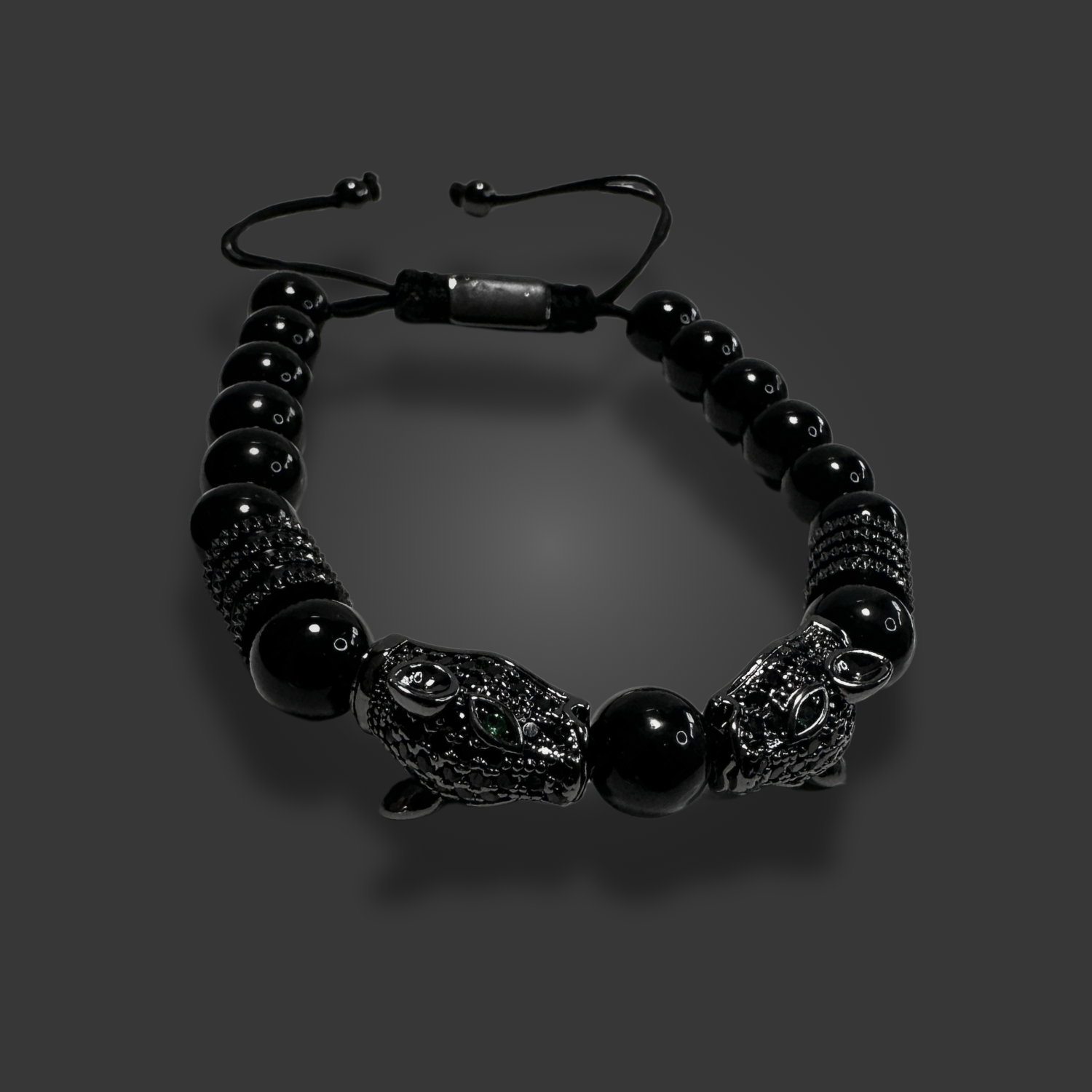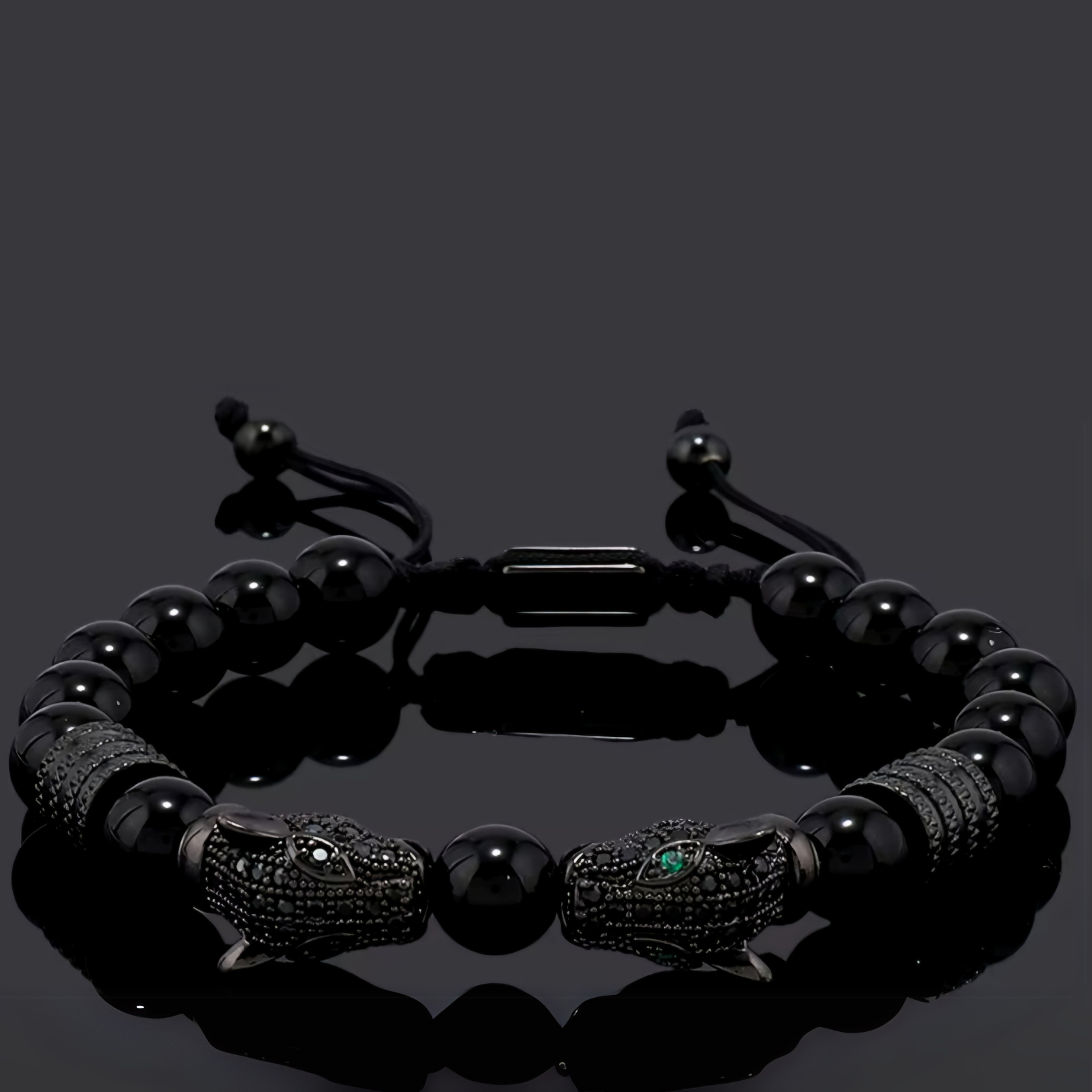 Entdecke die unverwechselbare Stärke und Eleganz mit Savanna, einem Armband, das die Wildheit der Savanne in einem luxuriösen Design einfängt. Die detailreich gestalteten Leopardenköpfe aus Edelstahl mit ihren tiefgrünen Augen symbolisieren Mut, Entschlossenheit und Stil. Die Kombination aus Achatperlen und robustem Material sorgt für einen einzigartigen Look und maximalen Tragekomfort.