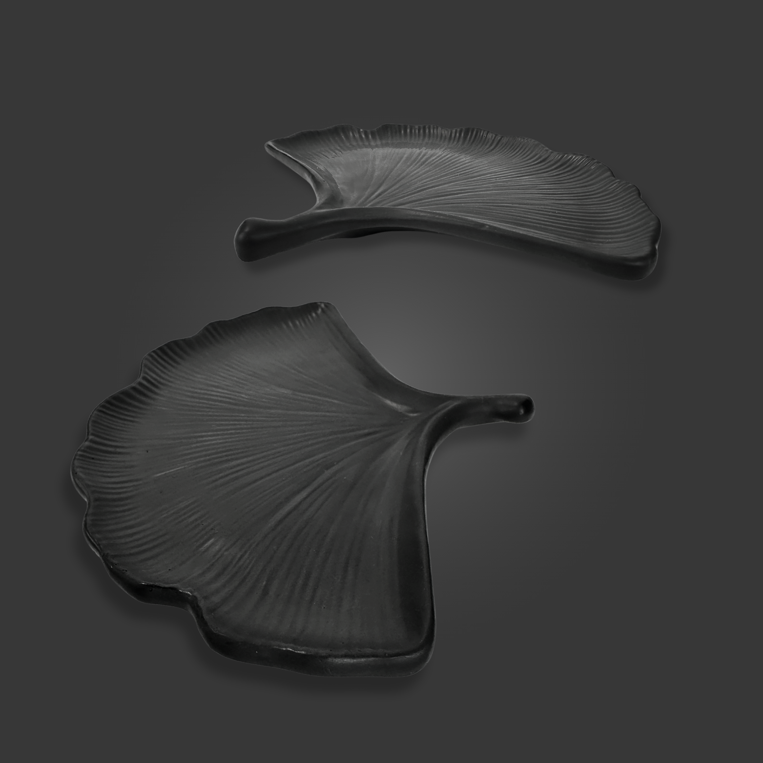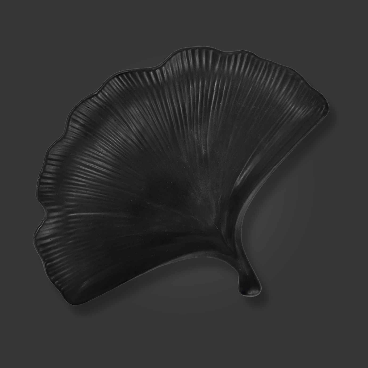 Inspiriert von der anmutigen Form des Ginkgo-Blatts verbindet dieses Design zeitlose Eleganz mit moderner Funktionalität. Mit seiner organischen Struktur und der matten, schwarzen Oberfläche wird es zu einem Highlight in jedem Raum.