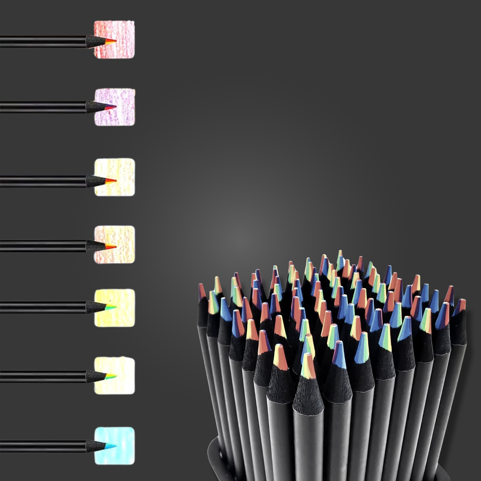 Verleihe deinen Zeichnungen einen einzigartigen Touch – mit diesen mattschwarzen Regenbogenfarbstiften aus Holz wirst du zum Highlight in jedem kreativen Moment!