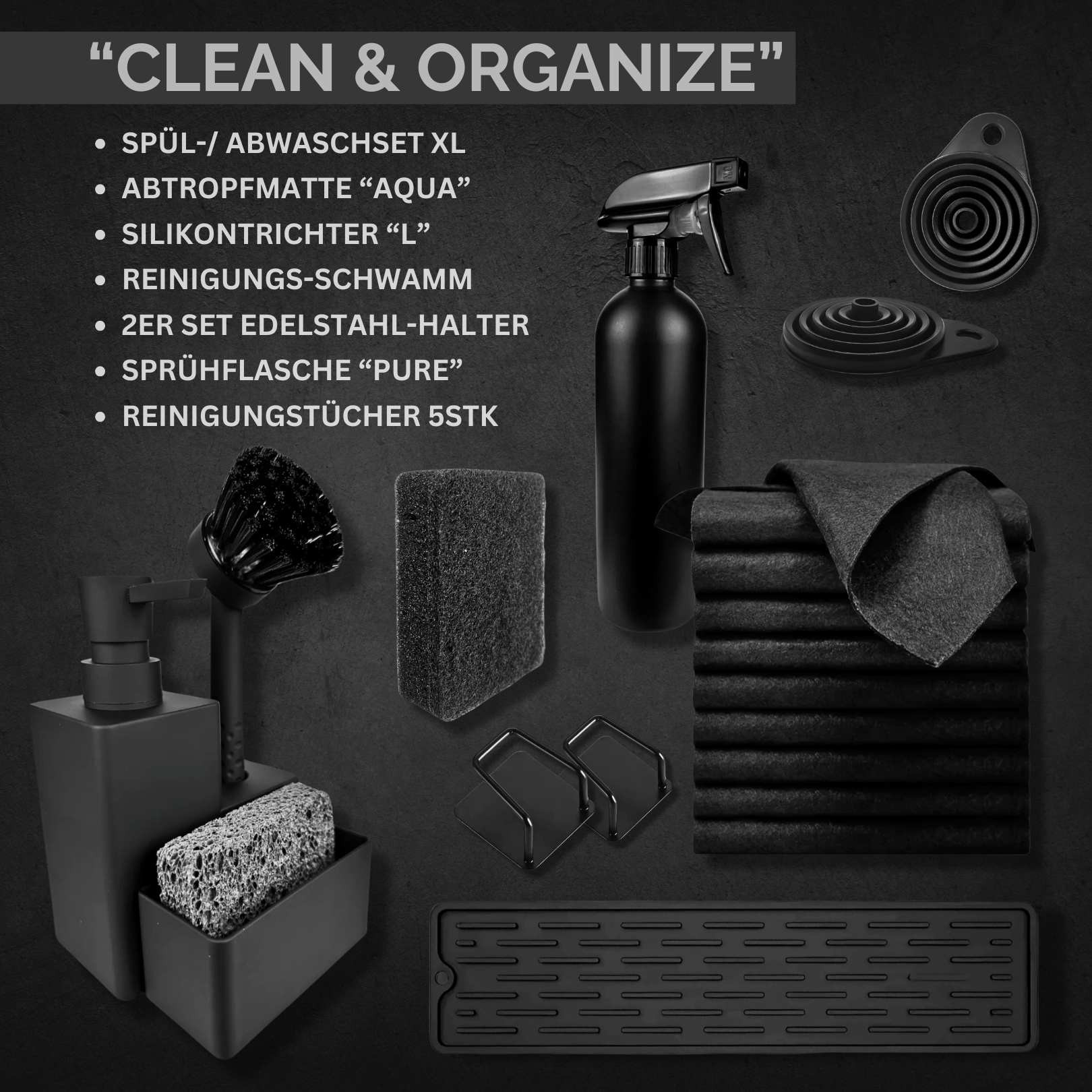 Minimalistisch, monochrom und maximal effektiv: Das Clean & Organize Bundle vereint Ästhetik mit Funktion. Für alle, die ihre Küche oder ihr Bad nicht nur sauber halten, sondern stilvoll organisieren wollen.