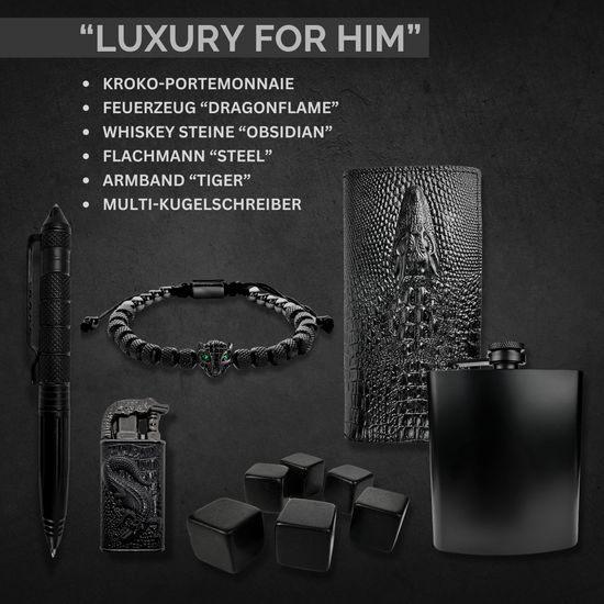 Warum sich mit dem Gewöhnlichen zufriedengeben, wenn es auch luxuriös geht? Die "Luxury for Him" Box ist das perfekte Geschenk für Männer, die Eleganz, Funktionalität und maskulinen Stil lieben.