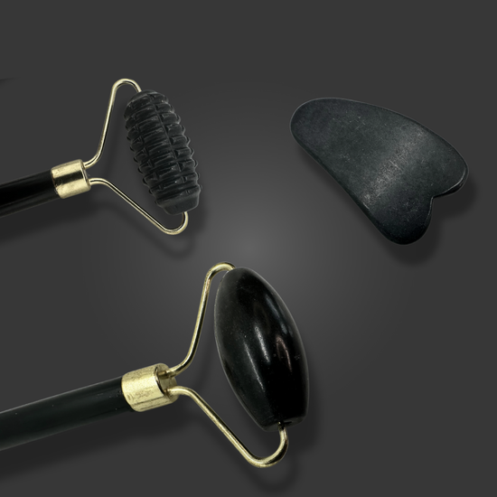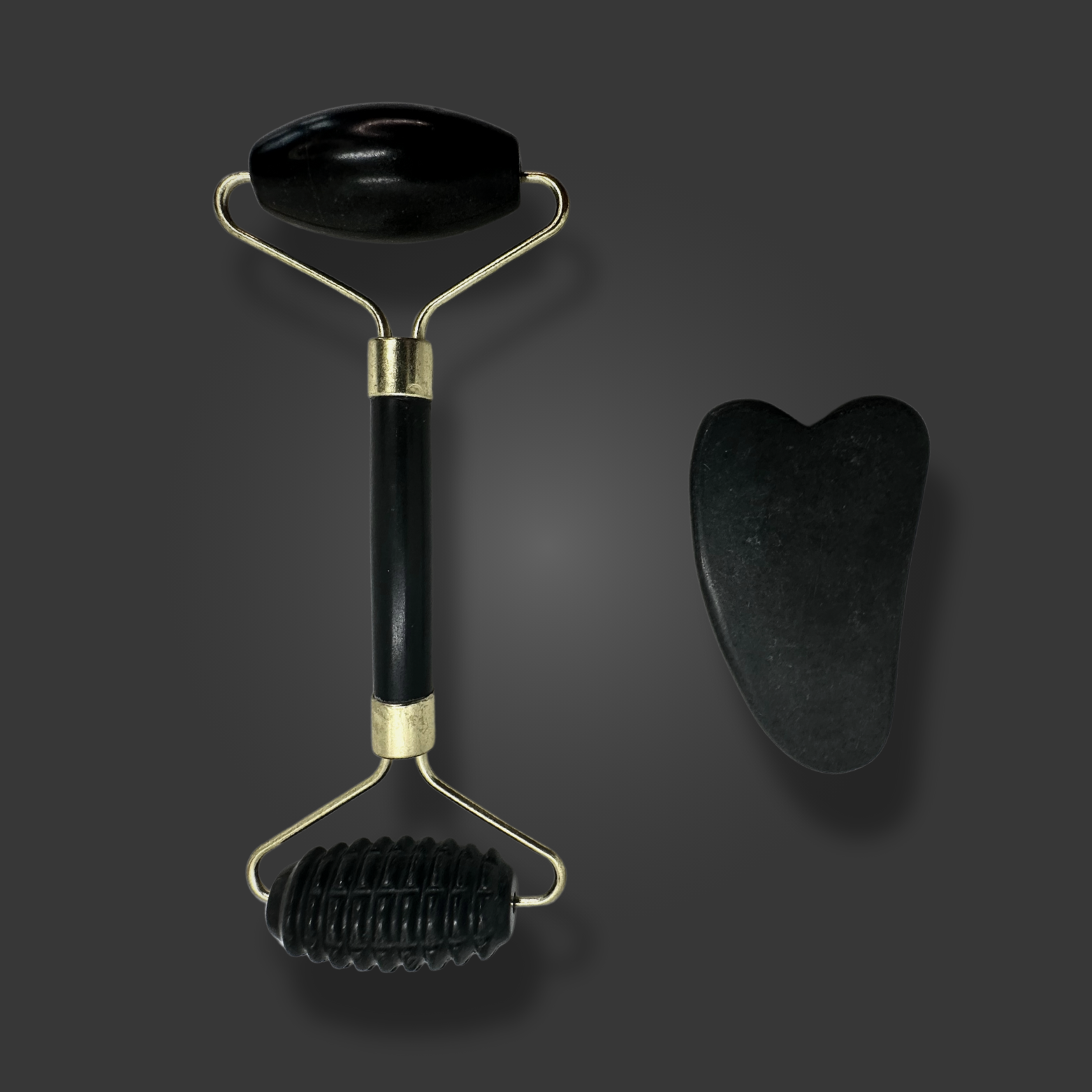 Verwandle deine Hautpflegeroutine mit dem Obsidian Jade Roller und Guasha-Set! Dieses luxuriöse Set, gefertigt aus hochwertigem Jade-Stein, ist dein perfekter Begleiter für eine wohltuende Gesichtsmassage. Der Jade Roller, mit seinen glatten und gerillten Enden, verbessert die Durchblutung, reduziert Schwellungen und hilft, feine Linien und Falten zu mindern. Das Guasha-Tool bietet zusätzlich eine sanfte Lymphdrainage und beruhigt entzündete Hautstellen.
