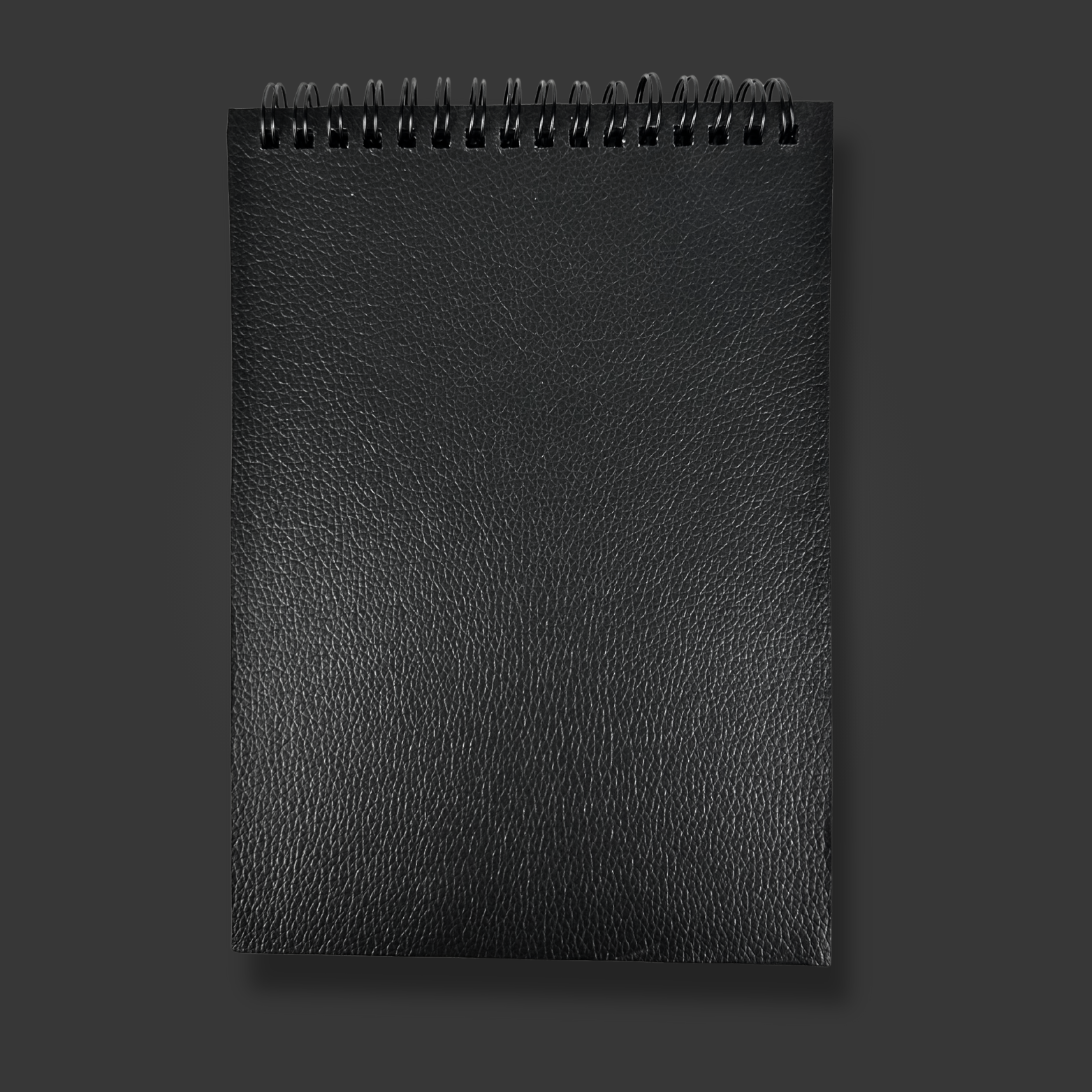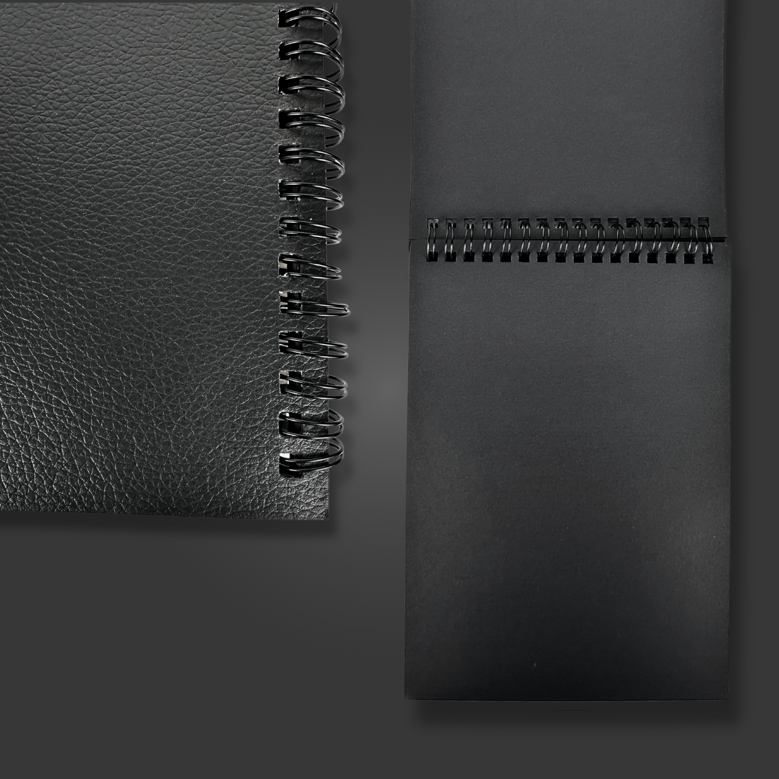 Entdecke den perfekten Begleiter für deine Notizen, Skizzen oder kreativen Ideen. Dieses Notizbuch in der handlichen A5-Größe bietet 32 Seiten aus komplett schwarzem Papier, ideal für glattes Schreiben und Zeichnen ohne Durchdrücken. Der elegante Kunstleder-Bezug verleiht dem Notizbuch ein edles und professionelles Aussehen, während die robuste Spiralbindung eine einfache Handhabung ermöglicht.