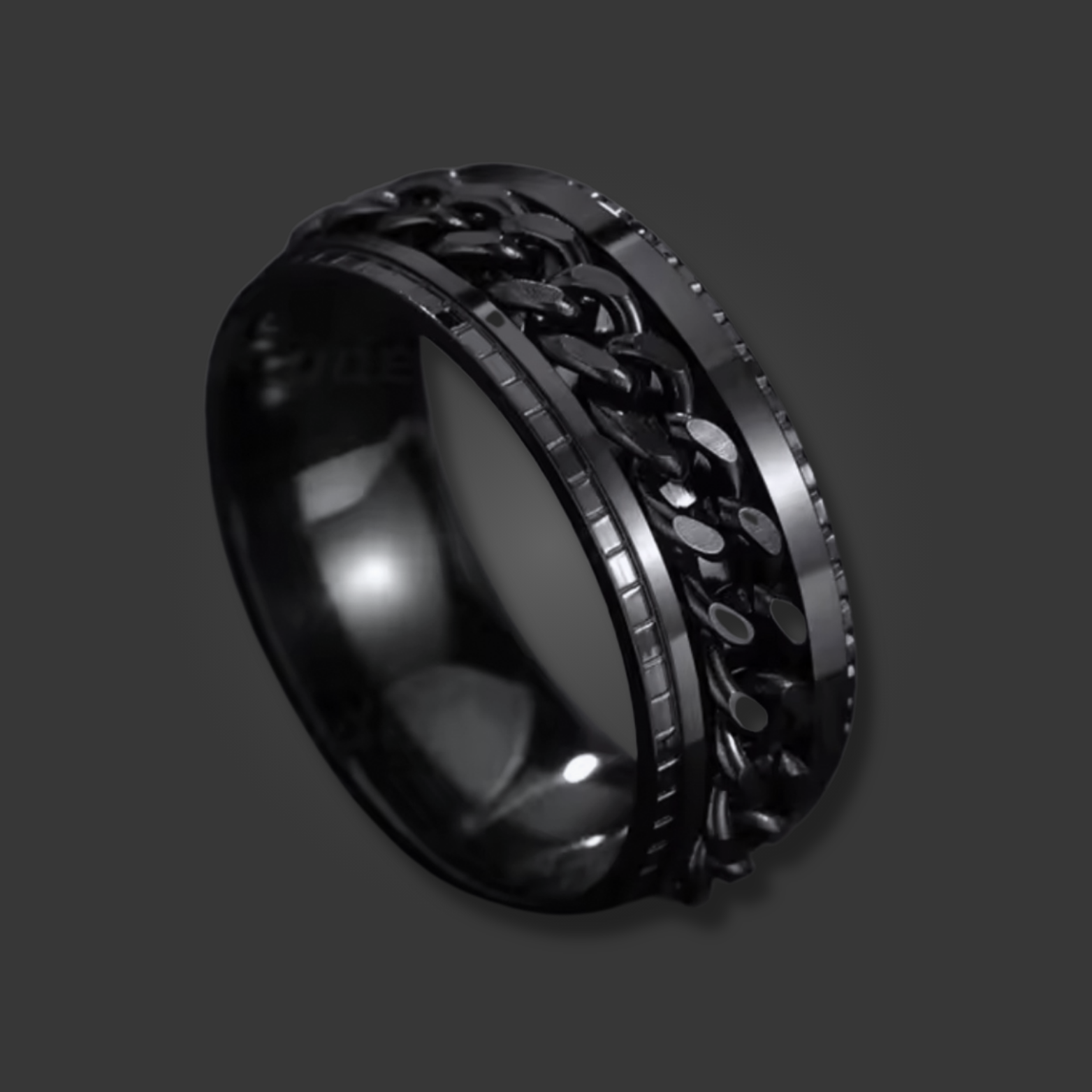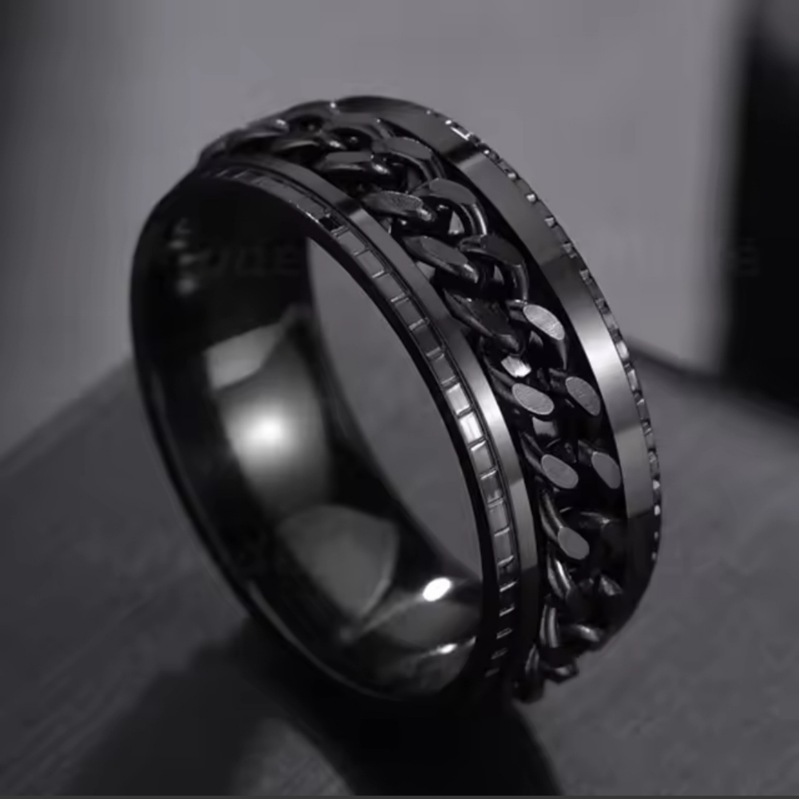 Der Motion-Ring bringt Stil und Bewegung in Einklang und definiert Eleganz auf eine dynamische Weise. Gefertigt aus robustem Edelstahl, besticht dieses Schmuckstück durch seine drehbare Ketteneinlage, die sowohl einen modernen Look als auch spielerische Funktionalität bietet. Die sich drehende Kette symbolisiert ständige Bewegung und Wandel – ein perfektes Accessoire für alle, die das Besondere schätzen.